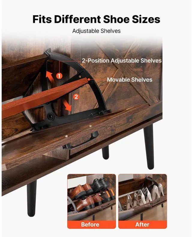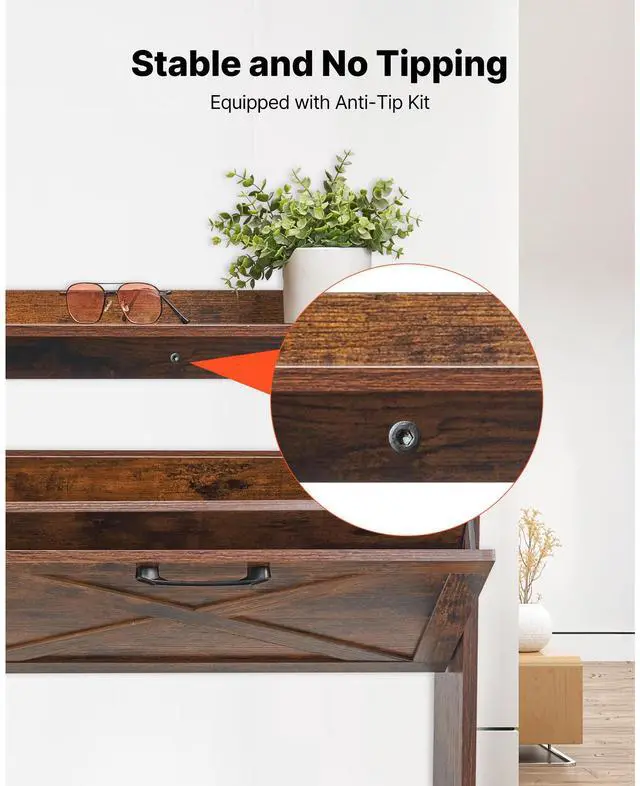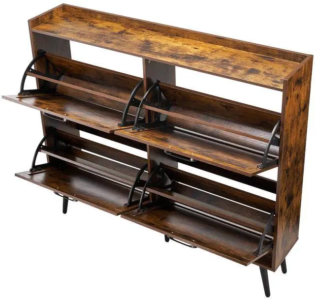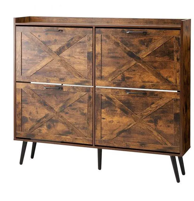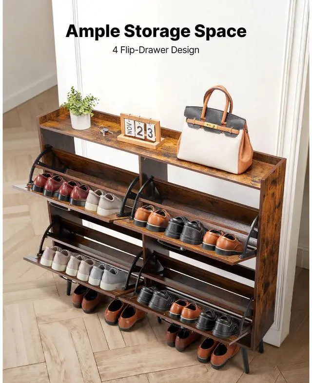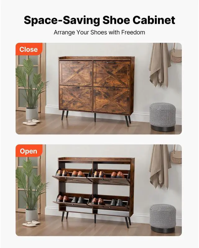 VEVOR Shoe Cabinet with 4 Flip Drawers, Farmhouse Shoes Storage Cabinet with Wood Legs and Anti-Tipping Device, Freestanding Shoe Organizer Ideal for Entryway, Hallway, Bedroom, Living Room, Brown
