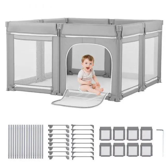 VEVOR Baby Playpen, 78.7 x 70.1 Extra Large Toddlers Playpen, Foldable Baby Fence Play Yard with Zippered Door & Soft Breathable Mesh, Indoor Outdoor Safety Activity Center - Great Gift for Toddlers