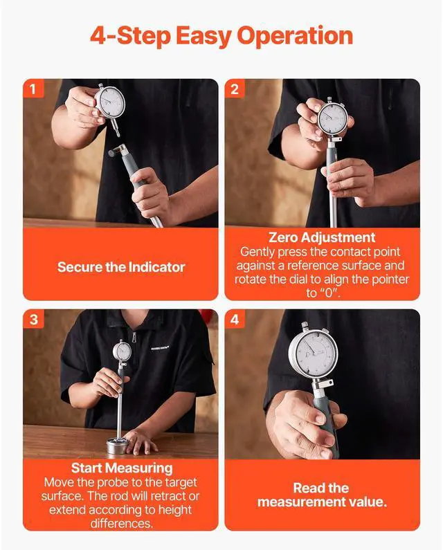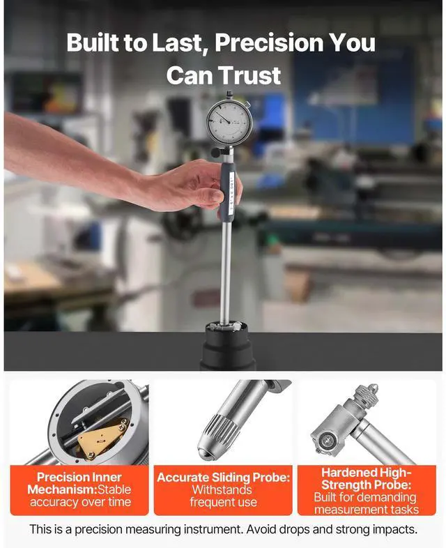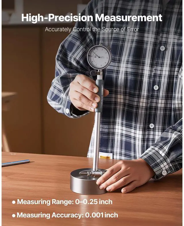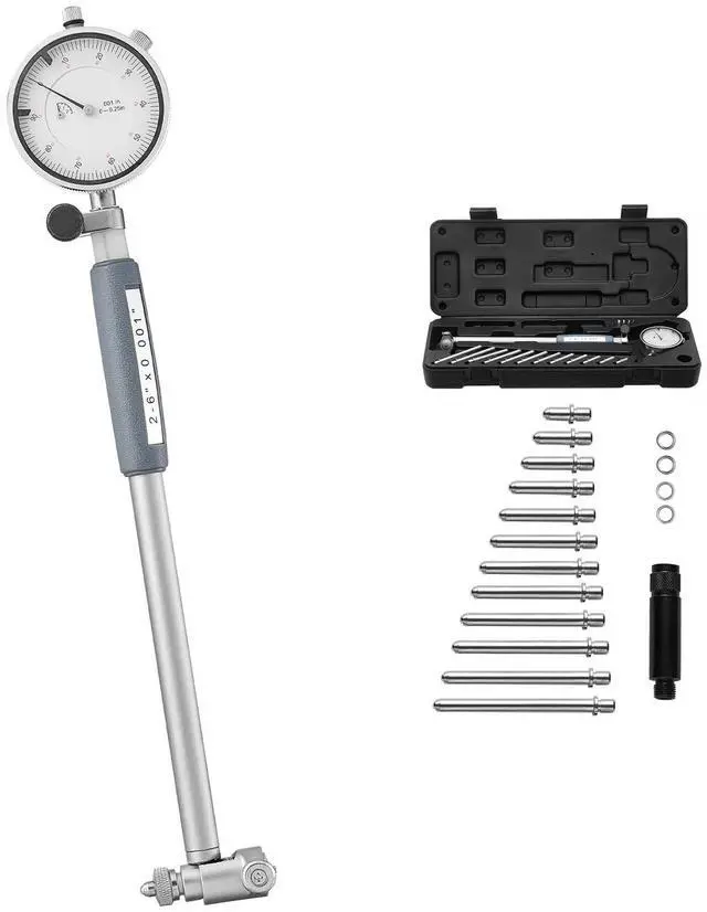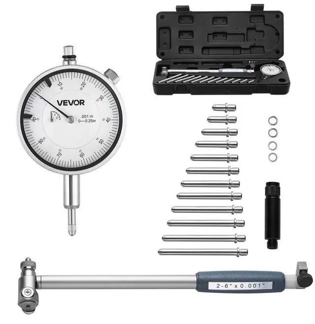 VEVOR Dial Test Indicator and Bore Gauge Measuring Tool Set, Dial Indicator 0.001 inch Accuracy, 2-6 inch Bore Range with Rod, Storage Case, Anvils for Industrial Machining Measurements