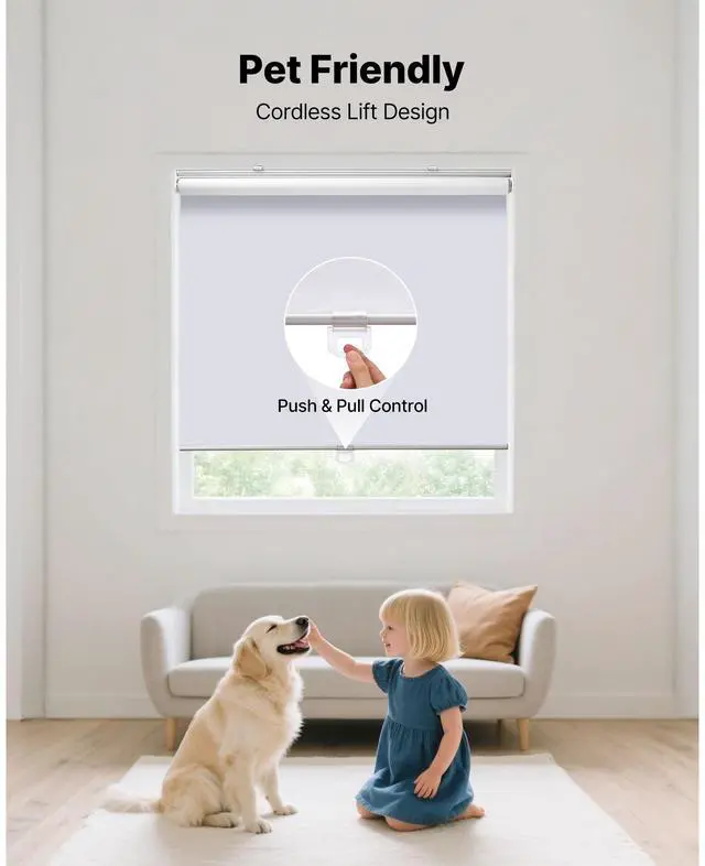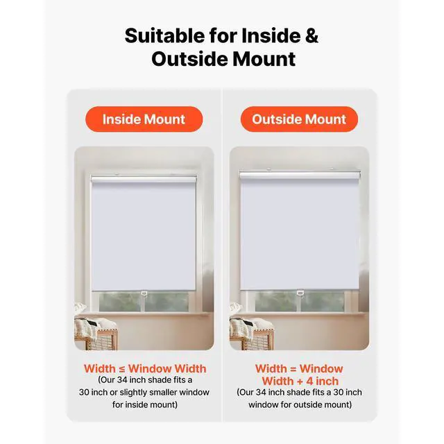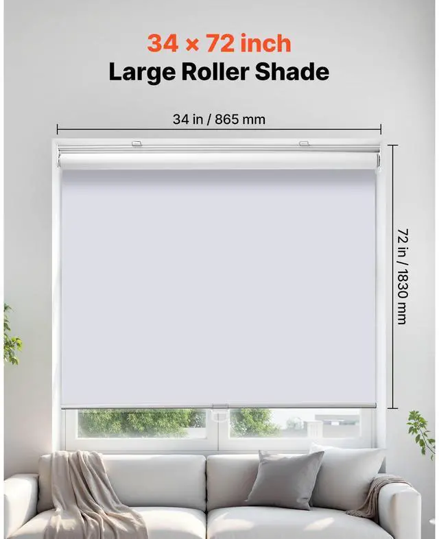 VEVOR Cordless Roller Shades, 34 x 72 in, Pull Down Blackout Blinds for Windows Room Darkening, Thermal Insulated, Easy to Install, Blackout Roller Shades for Bedroom, Bathroom, Home, Office, White