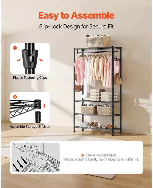 VEVOR Clothing Garment Rack, Heavy Duty Clothing Garment Rack, 4 Adjustable Tiers Clothing Racks with Carbon Steel, 500 lbs Load Capacity Closet Wardrobe for Bedroom, Clothing Store, Hallway
