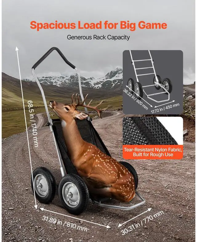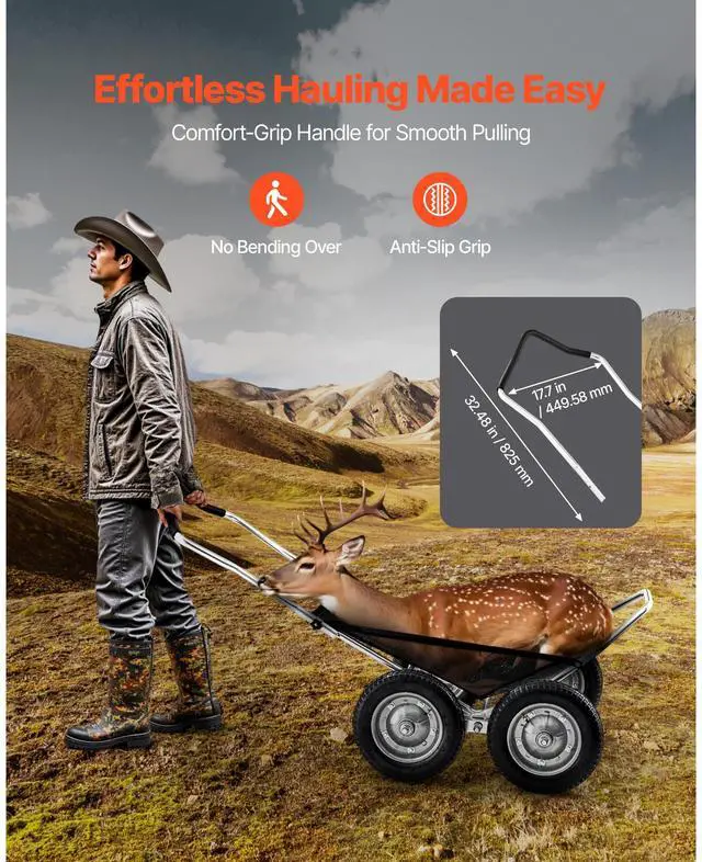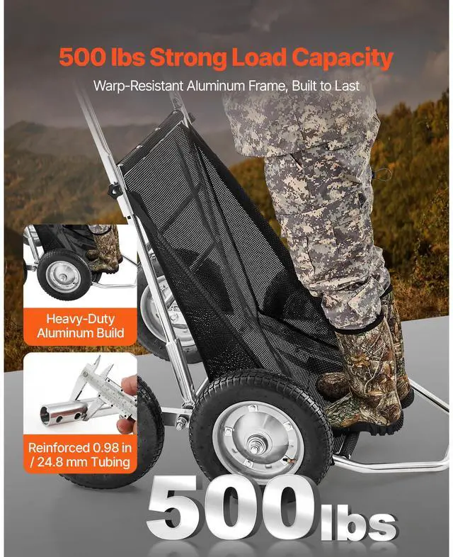 • VEVOR Game Carts for Hunting, 500LBS Deer Cart Game Hauler, Heavy-Duty Crawler Cart, All-Terrain Folding Deer Hauling Cart with Shock-Absorbing Tires, Utility Gear Dolly for Hunting Fishing Hiking