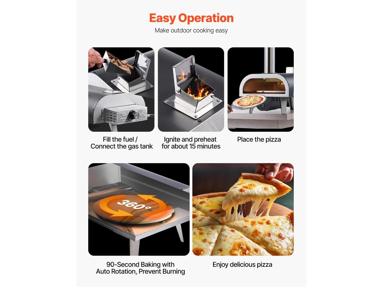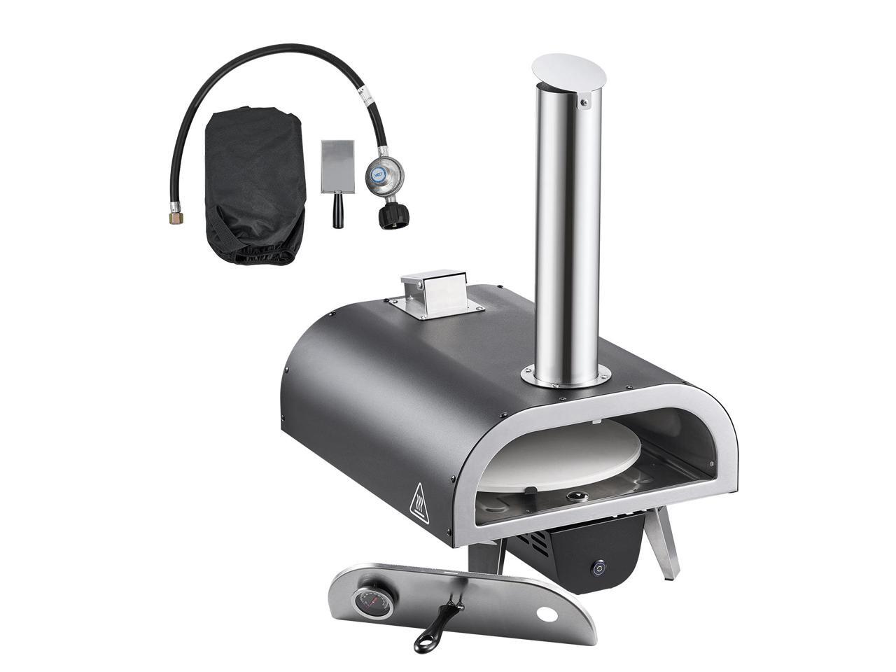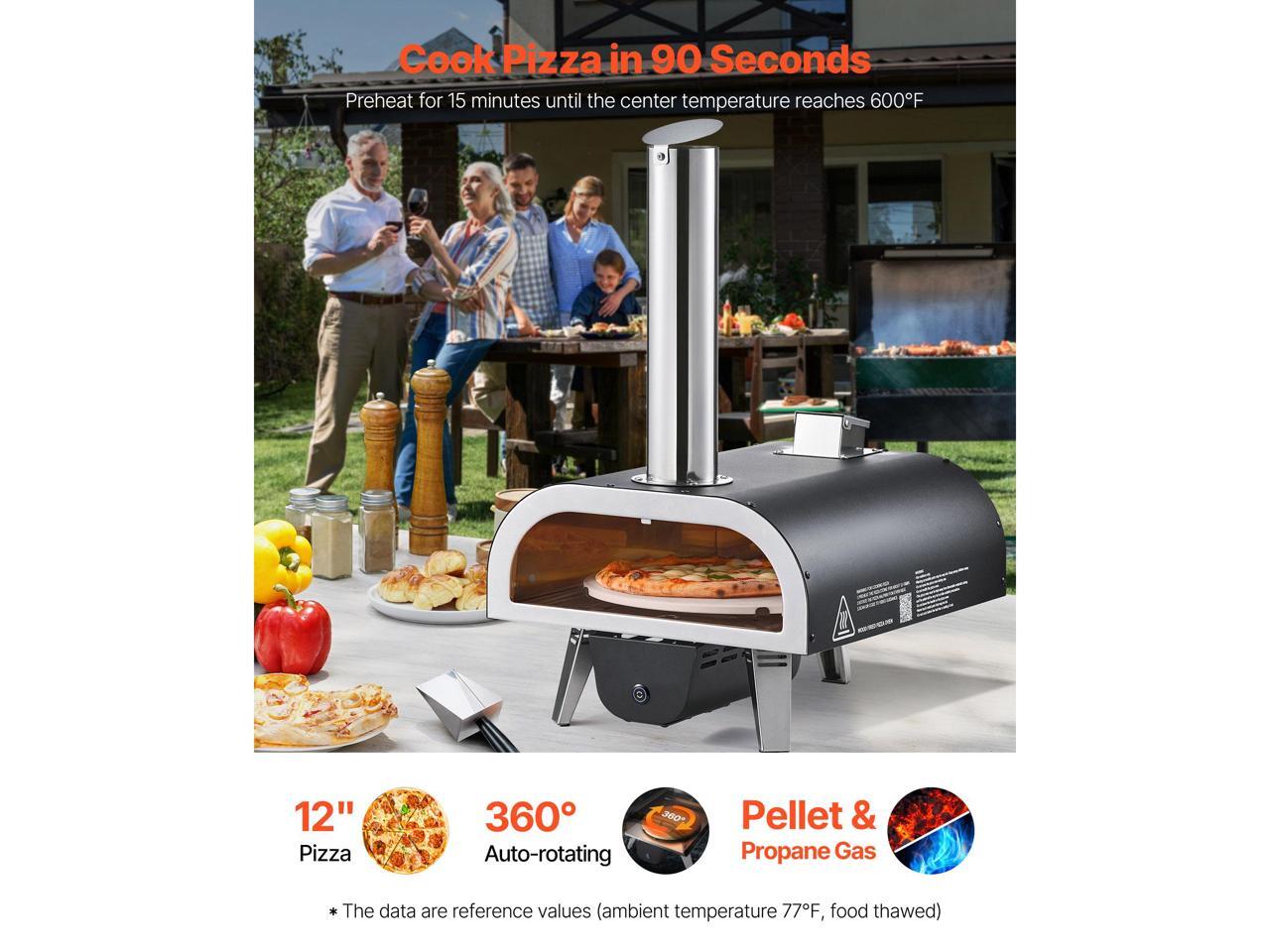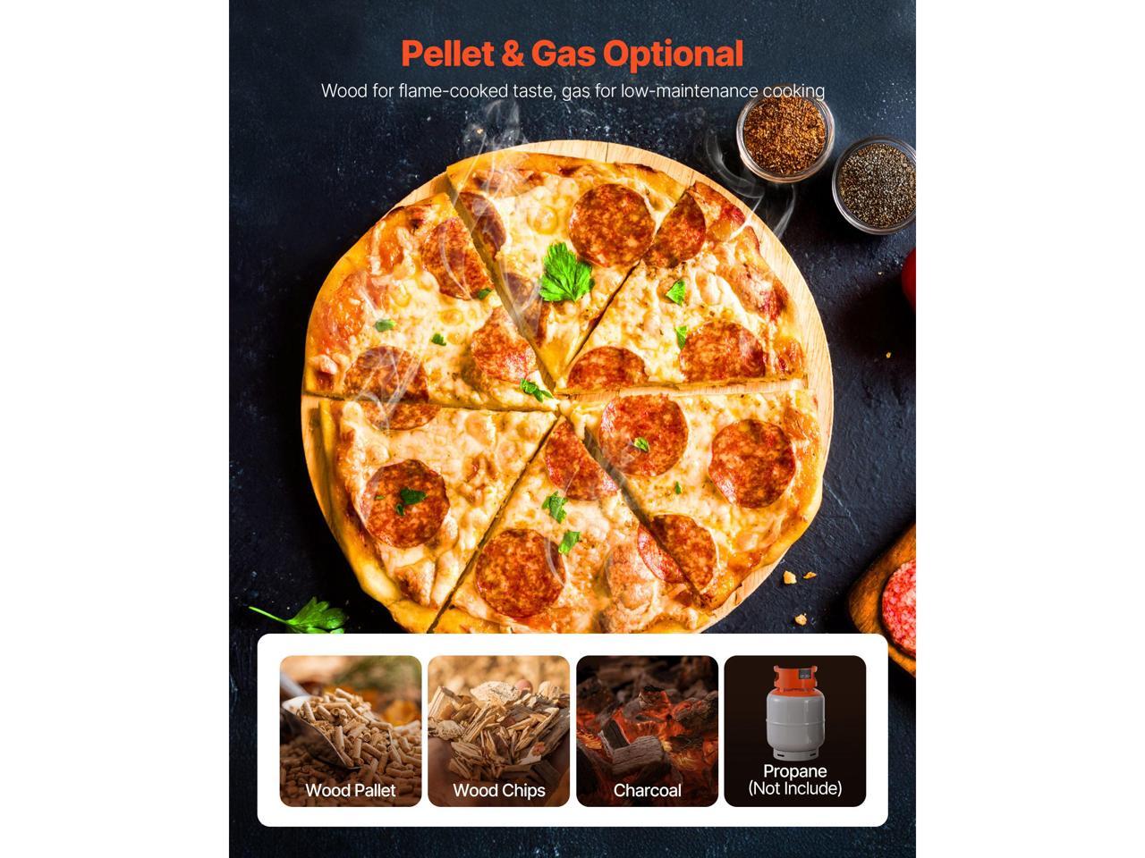 - VEVOR Dual Fuel Pizza Oven Outdoor, 12 in Wood Fire & Propane Gas Pizza Oven, Pellet & Propane Pizza-Maker with Thermometer, Iron Spray Electric Rotation Pizza-Cook for Outside Camping & Backyard
