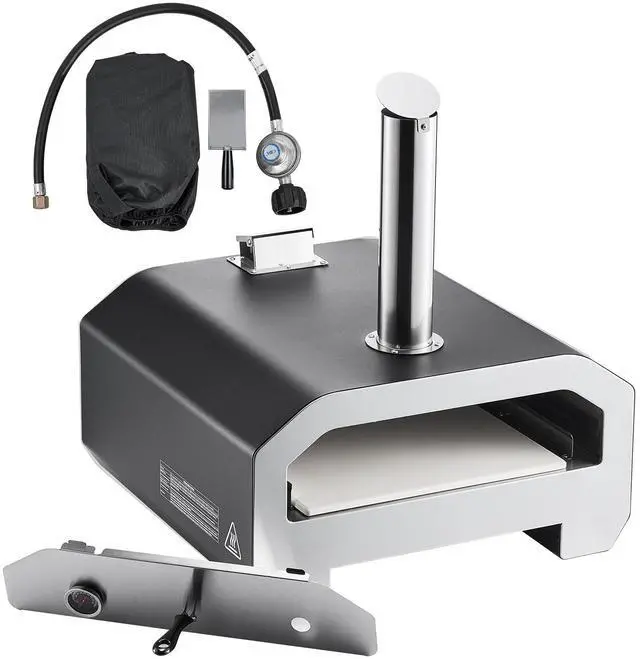 VEVOR Dual Fuel Pizza Oven Outdoor, 16 in Wood Fire & Propane Gas Pizza Oven, Portable Pellet & Propane Pizza-Maker with Thermometer, Iron Spray Black Shell Pizza-Cook for Outside Camping & Backyard