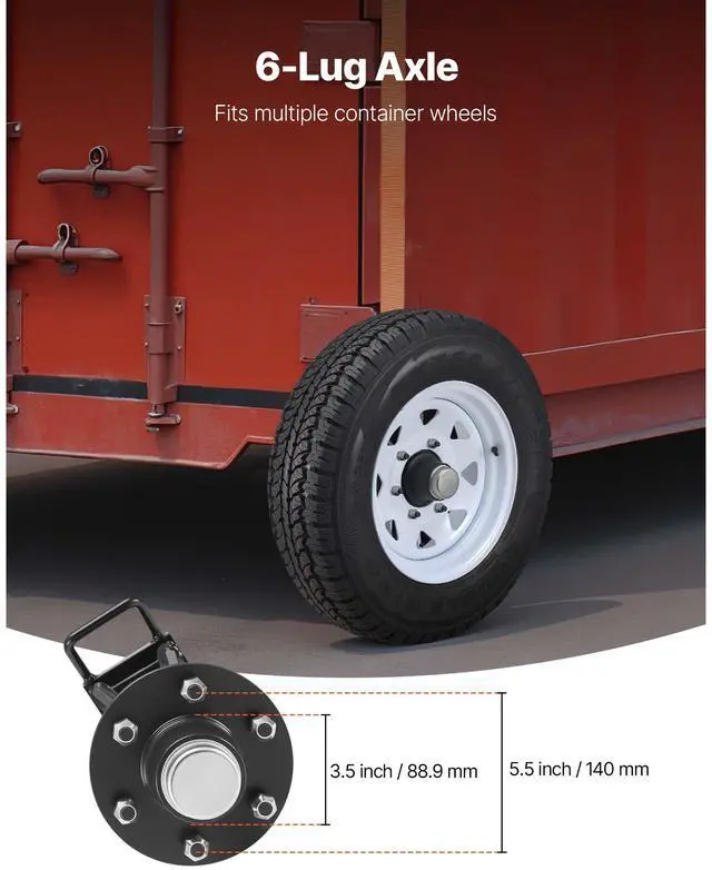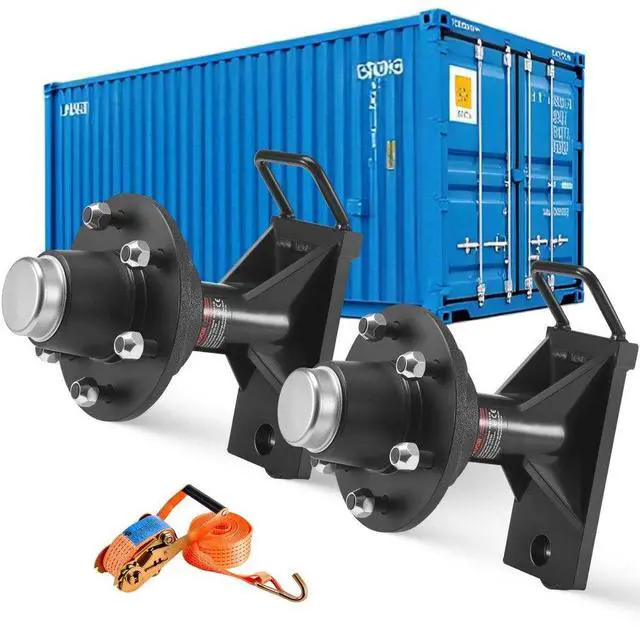 VEVOR Shipping Container Wheels 6-Lug Wheels Kit, Heavy Duty Shipping Container Axle with Ratchet Tie Down-Moves 20 ft - 40 ft, Secure Transport for Dock, Warehouse, Construction Site, Black