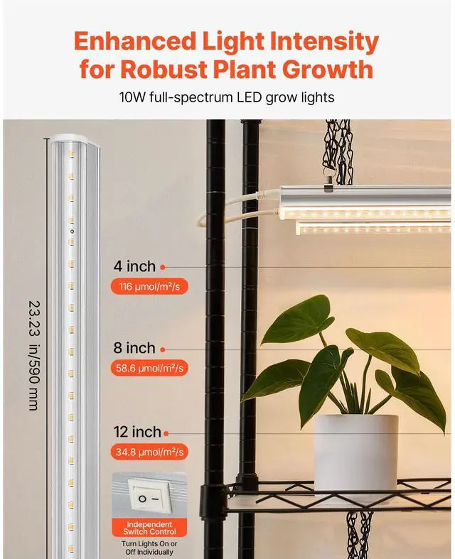 Number of Grow Lights: 8 x LED Light Panels (T5 Fixtures)