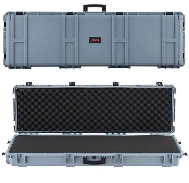 VEVOR Hard Rifle Case, Lockable Rifle Case with Pre-cut Foams, 52 in Gun Storage with Wheels, Heavy Duty IP67 Waterproof & Dustproof Pistol Storage Cases for Rifles, Shotguns, Airsoft Guns, Grey