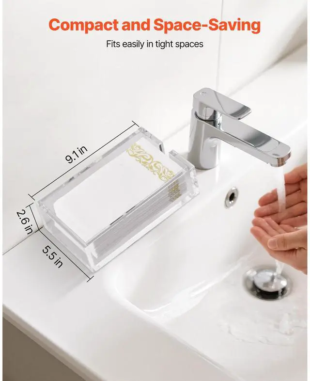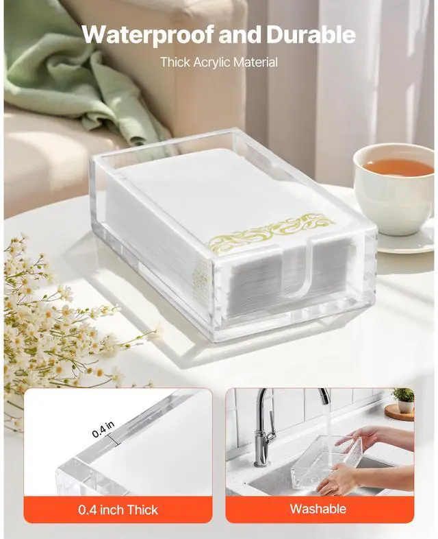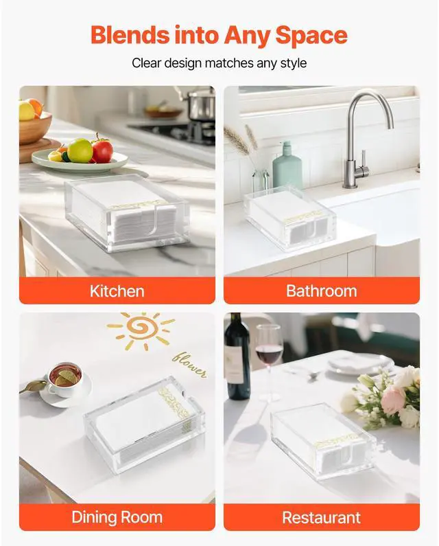 VEVOR Acrylic Napkin Holder, 9.1 x 5.5 x 2.6 inch, Clear Bathroom Guest Towel Storage Tray with U-Shaped Opening, Disposable Paper Towel Holder for Bathroom Kitchen Parties Weddings & Various Events