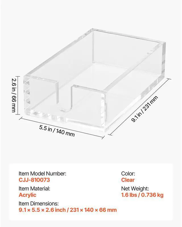 Item Material: Acrylic,Color: Clear,Item Model Number: CJJ-810073,Item Dimensions: 9.1 x 5.5 x 2.6 inch / 231 x 140 x 66 mm,Net Weight: 1.6 lbs / 0.7 kg