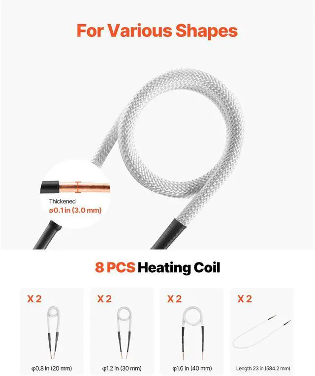 Copper Wire Diameter: 0.1 in / 3 mm,Power Cord Length: 4.6 ft / 1.4 m,Main Materials: Pure Copper, ABS,Output Power: 1500W,Product Dimension: 11.0 x 8.1 x 2.8 in / 280 x 205 x 72 mm,Item Model Number: FH-1500,Product Weight: 5.9 lbs / 2.7 kg,Max Continuous Operating Time: 30 min,Heating Temperature: Approx. 1472 / 800,Carrying Case Dimension: 15.2 x 10.8 x 3.9 in / 387 x 275 x 100 mm,Heating Nut Diameter: 0.2-1.6 in / 5-40 mm,Number of Coils: 8