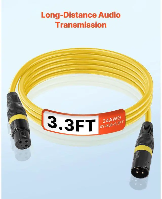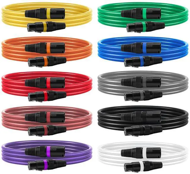 Cable Type: XLR,Cable Color: Colorful,Item Model Number: XY-XLR-3.3FT-10PK,Connector Type: XLR,Connector Gender: Male to Female (3-Pin),Cable Length: 3.3 ft/1 m,Product Dimensions: 6.30 x 5.12 x 2.95 in/160 x 130 x 75 mm,Number of Items: 10,Wire Gauge: 24 AWG,Net Weight: 2.05 lbs/0.93 kg,Main Material: Alloy + Copper + PVC,Connectors Color: Red,Orange,Yellow,Green,Blue,Purple,Curry,Gray,White,Black