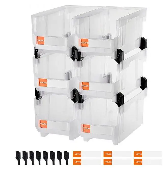 VEVOR Plastic Stackable Storage Bins, 14.8 x 8.5 x 7.1 inch (6 Pack), Plastic Containers for Organizing & Storage Bins for Closet, Garage, Small Parts, Office Supplies, Other Accessories, Transparent