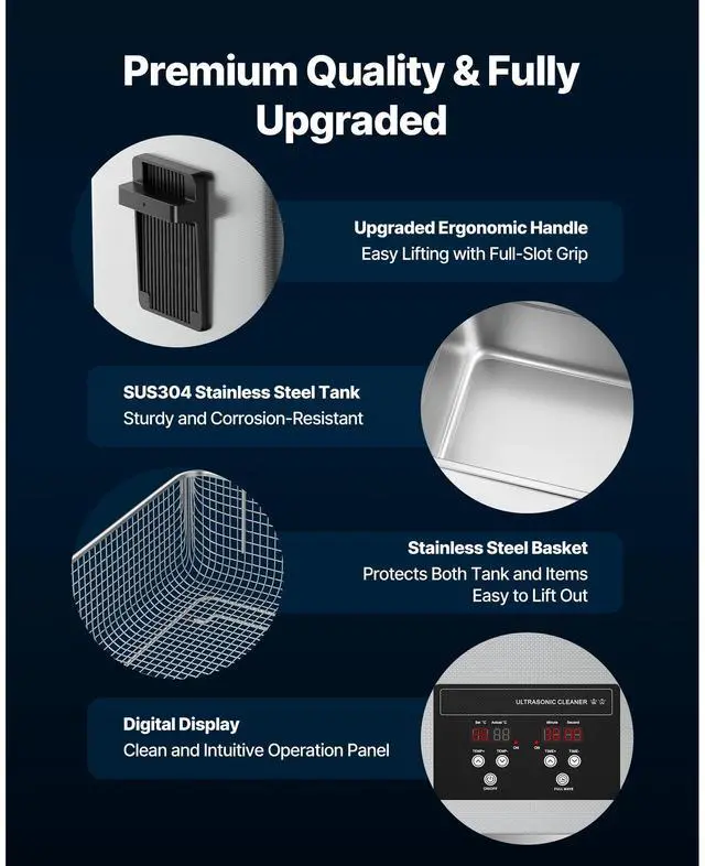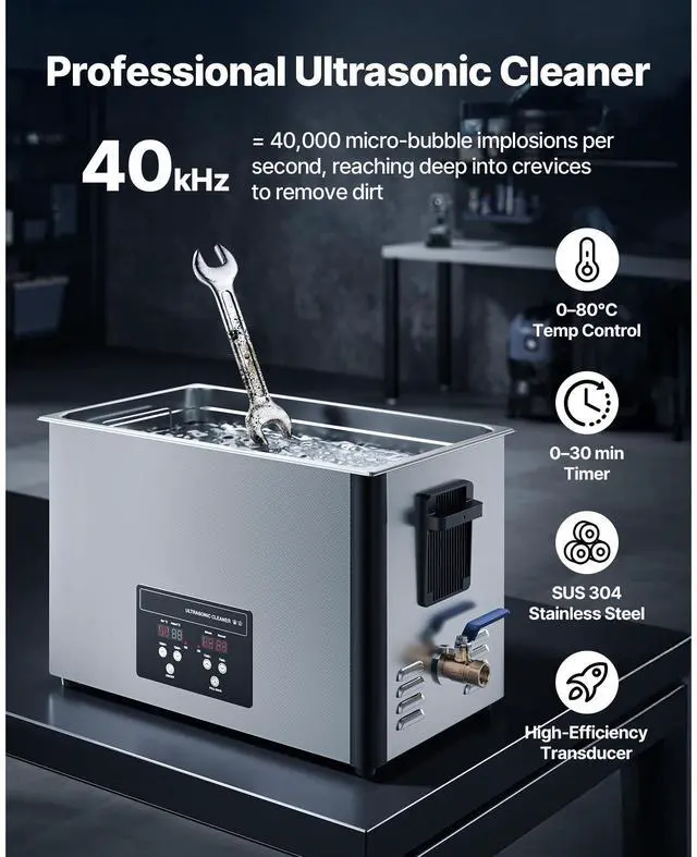 VEVOR 30L Ultrasonic Cleaner, Professional Ultrasonic Cleaner Machine with Cleaning Basket & Digital Display, 480W Stainless Steel 40kHz Industrial Cleaning Machine for Parts, Carburetors, Instruments