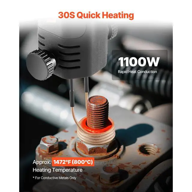 VEVOR Induction Heater Bolt Removal, 1100W 110V Magnetic Induction Heater Kit, Handheld Nut Buster Tool, Mini Heating Machine for Rusty Screw Removing, Car Garage Repairing Tools with 10 Coil and Box