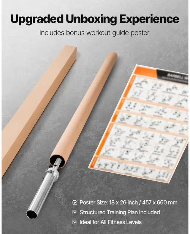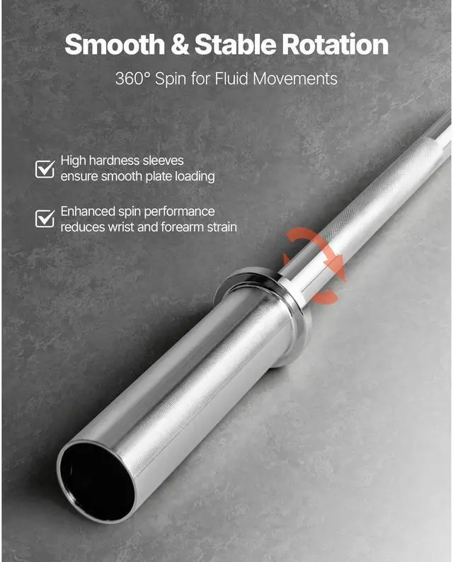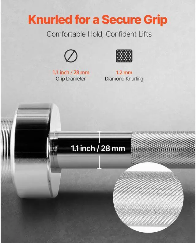 VEVOR 6FT Barbell Bar, Fits 2-Inch Weight Plates, Chrome Plated Barbell Bar with Knurled Grip for Strength Training, Weightlifting, Squat, Deadlift, Bench Press, Curl, Overhead Press, 550lbs Capacity