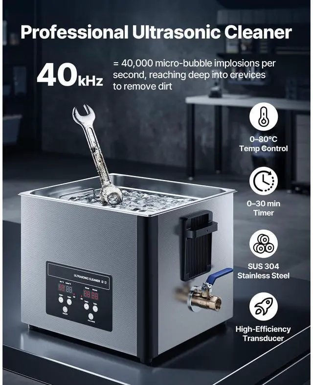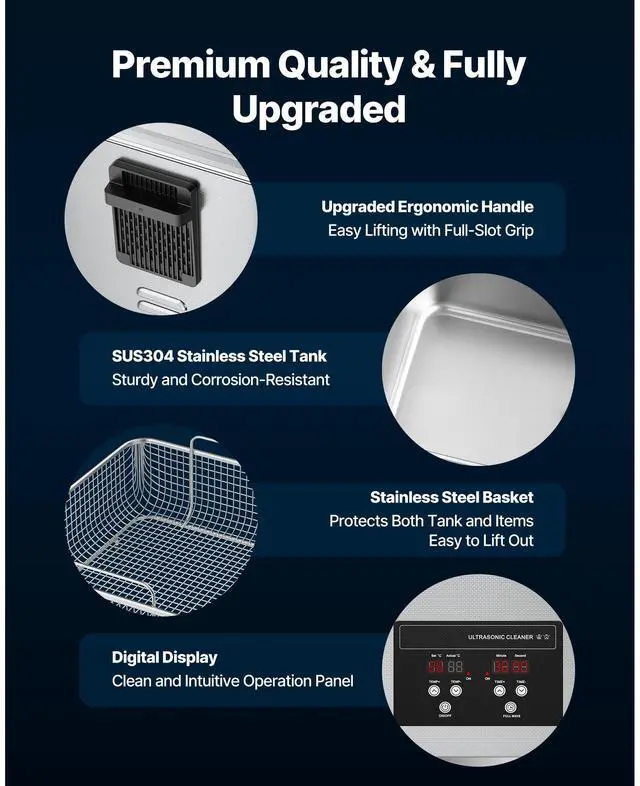 VEVOR 15L Ultrasonic Cleaner, Professional Ultrasonic Cleaner Machine with Cleaning Basket & Digital Display, 240W Stainless Steel 40kHz Industrial Cleaning Machine for Parts, Carburetors, Instruments
