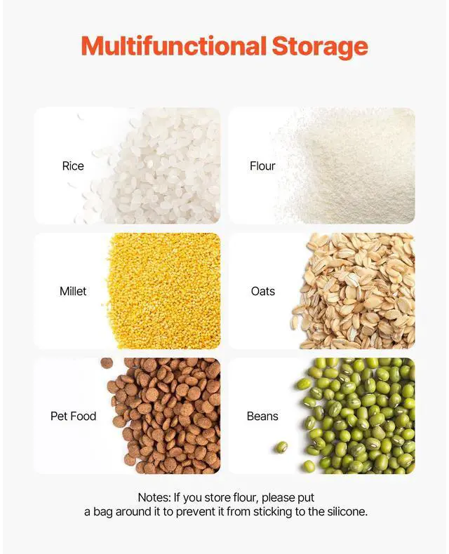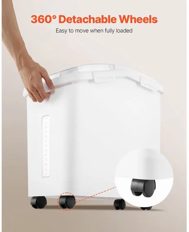 VEVOR Rice Storage Container, 11.4Gallon/50L Capacity Large Dog Food Dispenser Bin, Kitchen Ingredient Grain Cereal Flour Bin, Pet food Containers with Wheels, Scoop, Scale Line, Airtight Lid, 1 Pack