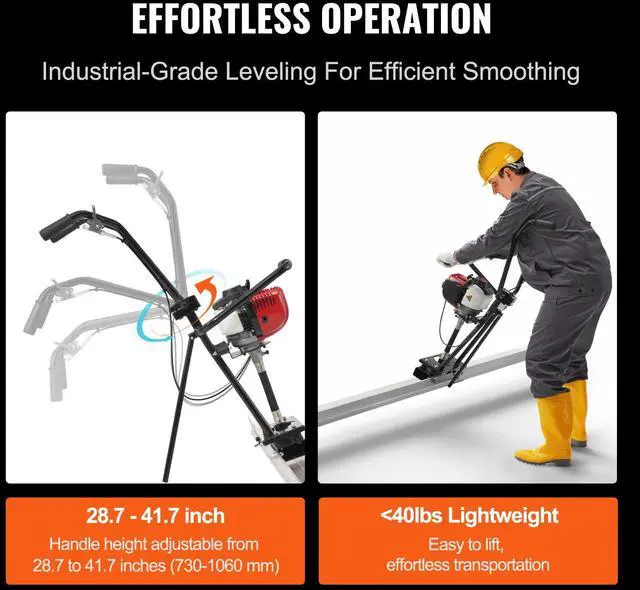 VEVOR Gas Concrete Power Screed, 6ft Aluminum Board Straight Edge Bar Set, 4 Stroke Cement Finishing Vibrating Motor with Height Adjustable Handles, High Efficient Concrete Tools 6500RPM