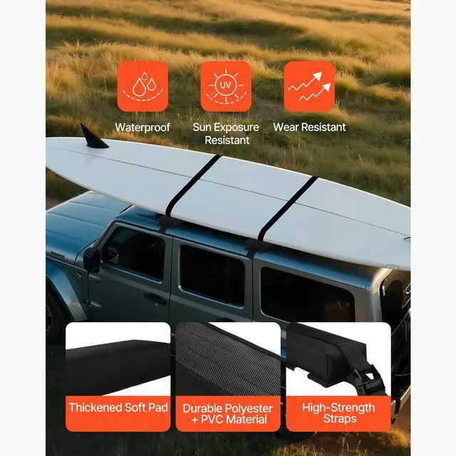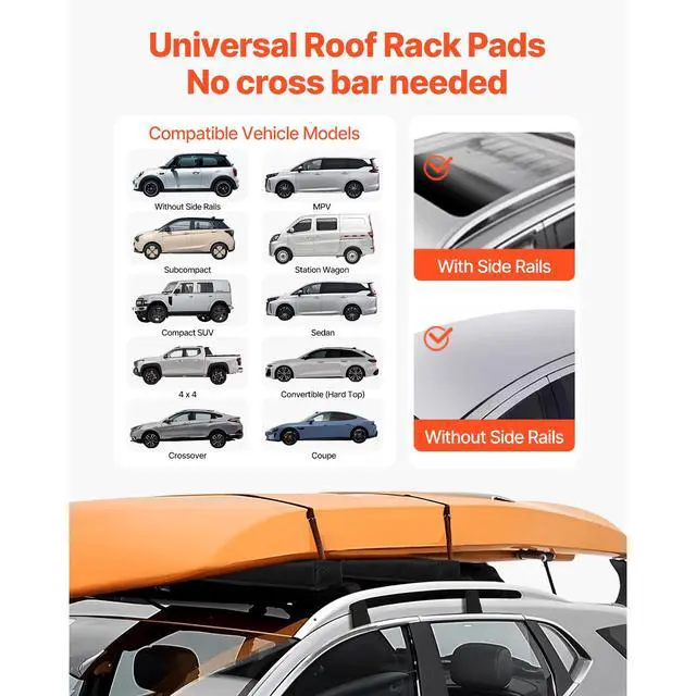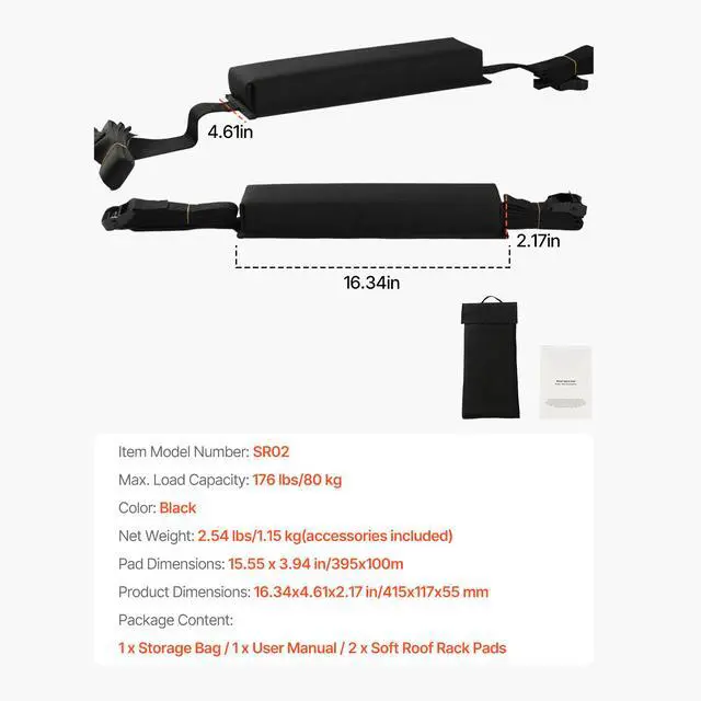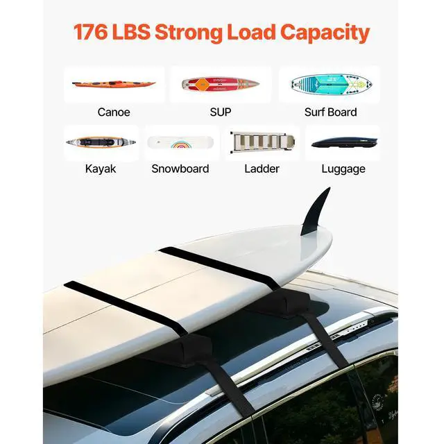 VEVOR Soft Roof Rack Pads, 15.5-Inch Universal Car Roof Rack Pads, 176LBS Loading Capacity Luggage Kayak Carrier with Portable Storage Bag for SUP Canoe Snowboard Paddle Board Surfboard