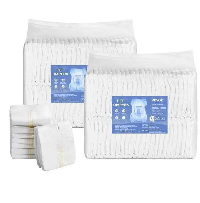 VEVOR Disposable Dog Diapers, Super Absorbent Female Dog Diapers, 360° Leak-Proof Female Doggy Pet Diaper with Wetness Indicator for Heat Period, Training, Incontinence - XS, 96 Count (2 Packs of 48)