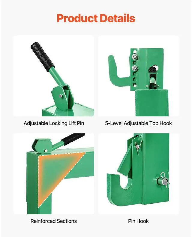 Net Weight (Including Accessories): 57.8 lbs / 26.2 kg,Product Capacity: 3000 lbs,Receiver Width: 2 in,Lower Arm Distance: 27.6 in,Color: Green,Item Model Number: 1-2in-3000-G,Top Outer Diameter: 30.2 in,Product Dimensions (L x W x H): 30.3 x 8.3 x 23.8 in / 770 x 210 x 605 mm,Main Material: Q235 Steel