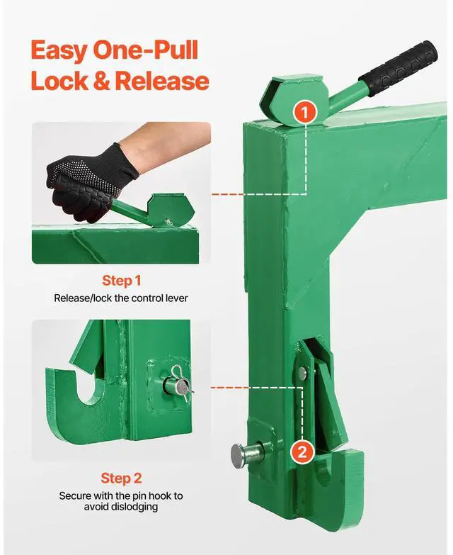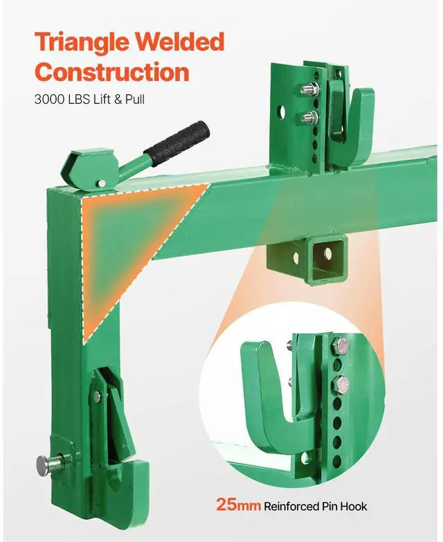 VEVOR 3-Point Quick Hitch with 2 in Receiver, 3000 Lbs Lift Capacity, 3-Pt Hitch with 5 Level Adjustable Bolt, Adaptation to Category 1 & 2 Tractor, Heavy Duty 3 Point Attachments, Green