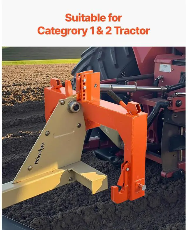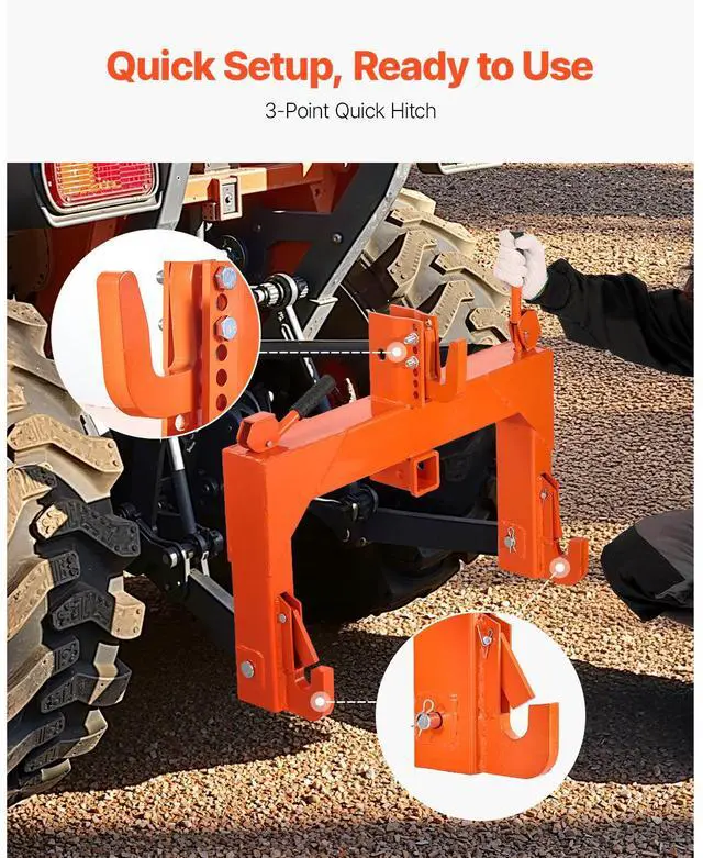 VEVOR 3-Point Quick Hitch with 2 in Receiver, 3000 Lbs Lift Capacity, 3-Pt Hitch with 5 Level Adjustable Bolt, Adaptation to Category 1 & 2 Tractor, Heavy Duty 3 Point Attachments, Orange