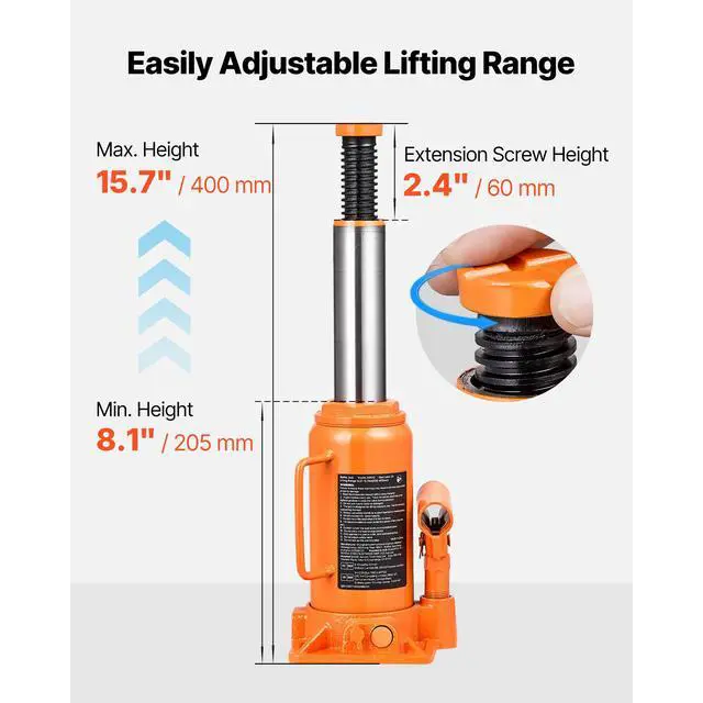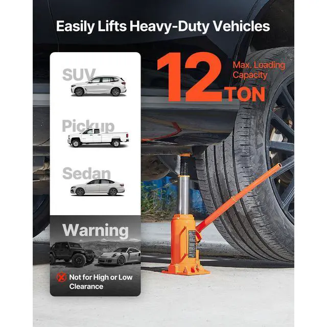 VEVOR Hydraulic Bottle Jack, 12 Ton (26455.5 lbs) Capacity, 8.1-15.7 Inch Lifting Range, Heavy Duty Welded Bottle Jack for Car, SUV, Pickup, Auto Repair, House Lift and Agricultural Equipment, Orange