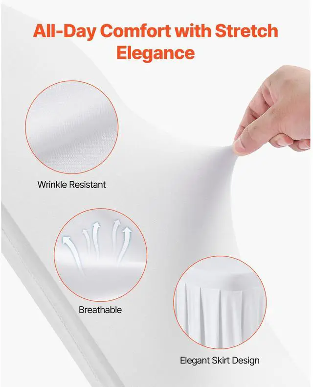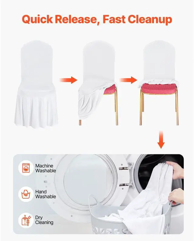 VEVOR 30 Pcs White Chair Covers, Polyester Spandex Chair Cover, Stretch Slipcovers for Wedding Party Dining Banquet Flat-Front Chair Covers, Fits Chair Measures up to 20.08 x 17.72 x 37.4 inch