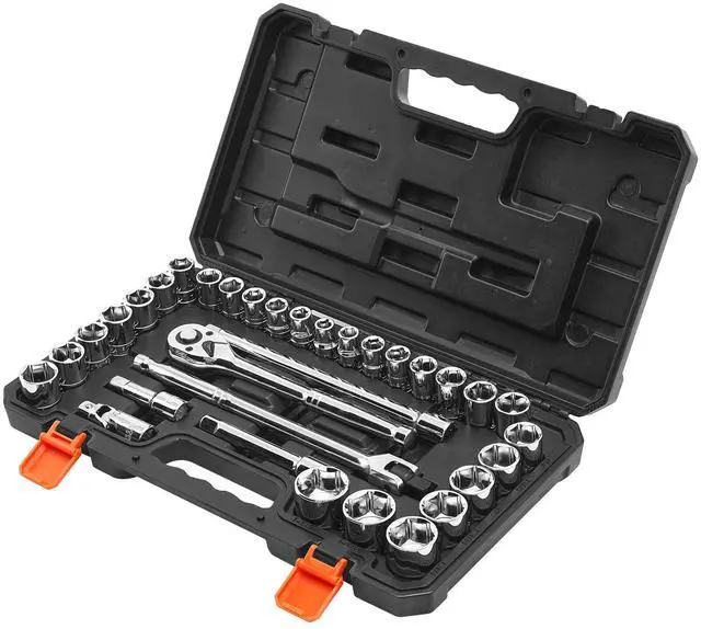 VEVOR Socket Set, 33 Pieces, 1/2 inch Drive Socket and Ratchet Set, SAE and Metric, Mechanic Tool Kit with Ratchet Wrench, Extension Bar and Storage Case, CR-V Alloy Steel, for Automotive Repair