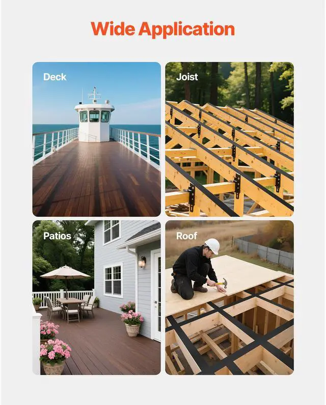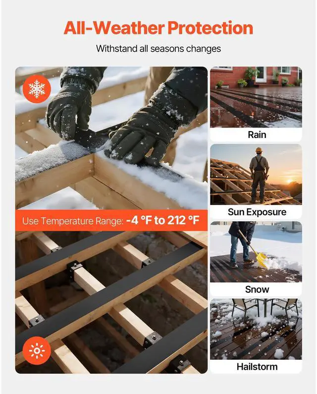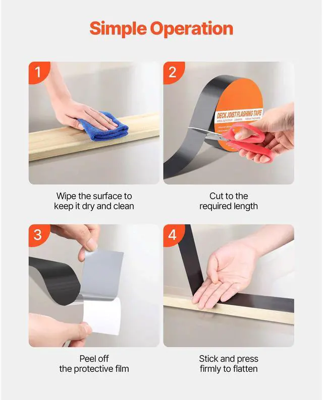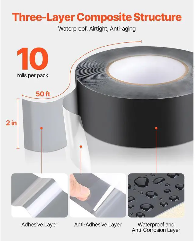 VEVOR Deck Joist Tape, 2 inch x 50 ft, 10 Pack, Weather-Resistant Waterproof Flashing Butyl Joist Tape for Decking, Self-Adhesive, for Wood Decks, Beams Roofs, RVs, House, and Pipes Repair, Black