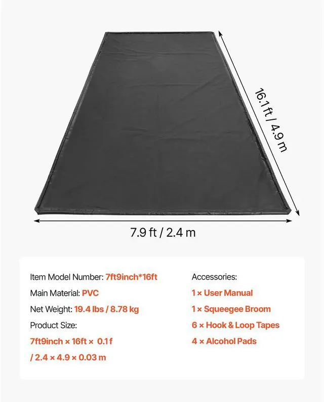 Item Model Number: 7ft9inch*16ft,Net Weight: 19.4 lbs/8.8 kg,Main Material: PVC,Product Size: 7.9 x 16.1 x 0.1 ft/2.4 x 4.9 x 0.03 m
