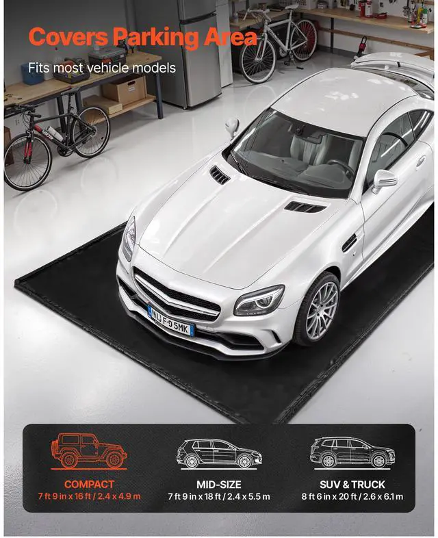 VEVOR Containment Mat, 7 ft 9 in x 16 ft, Non-Slip PVC Garage Floor Mat with a Cleaning Squeegee, Heavy Duty Durable Waterproof Containment Protection from Snow, Rain and Mud for Cars Parking, Black