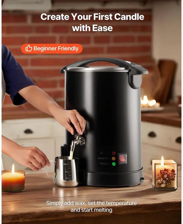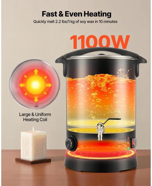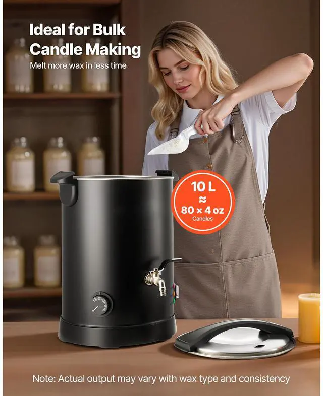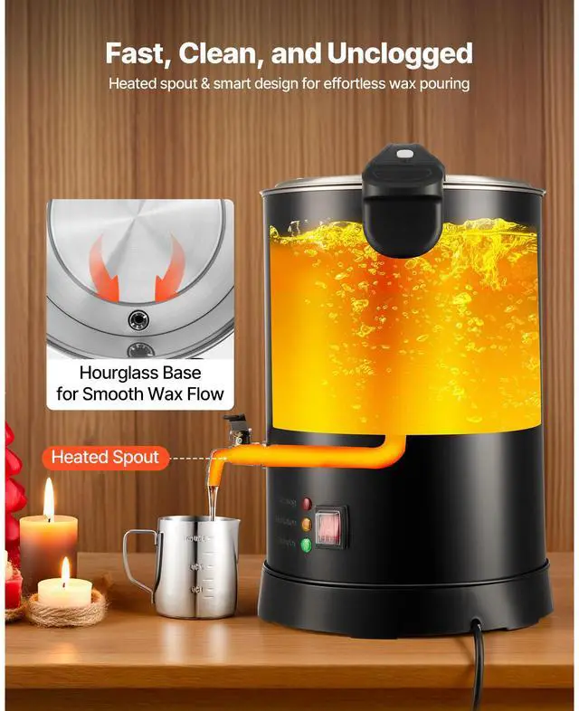 VEVOR Wax Melter for Candle Making, 10.6 Qts, Fast and Even Heating, with Easy Pour Spout and Temperature Control, Hourglass Base for Non-Stick Smooth Flow, Wax Melting Pot for Making Candles Soaps