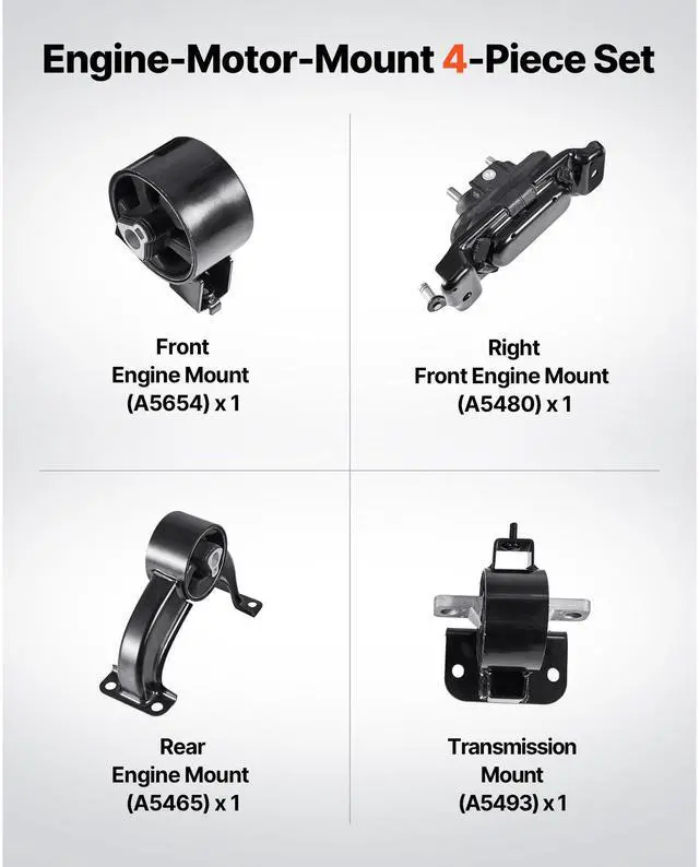 VEVOR Engine Motor Mount and Transmission Mount Kit Replacement, Set of 4, Compatible with 20082010 Chrysler Town & Country 3.3L, Replace OE# A5654, A5480, A5465, A5493, Secure Support