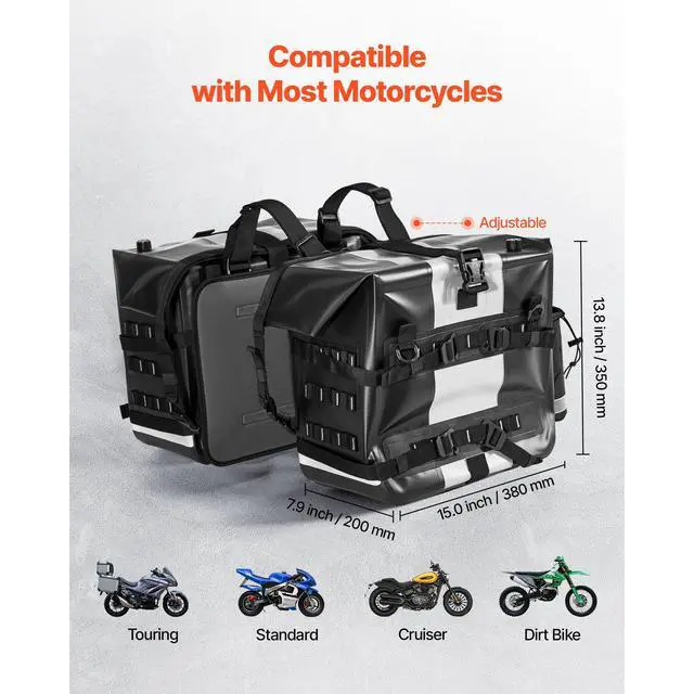 • VEVOR Motorcycle Saddlebag, 56 L (28 L x 2) Large Capacity Side Saddle Bag Compatible with Most Motorcycles, Waterproof Fabric Outdoor Sports Motorbike Luggage Storage with Detachable Inner Bag, Black