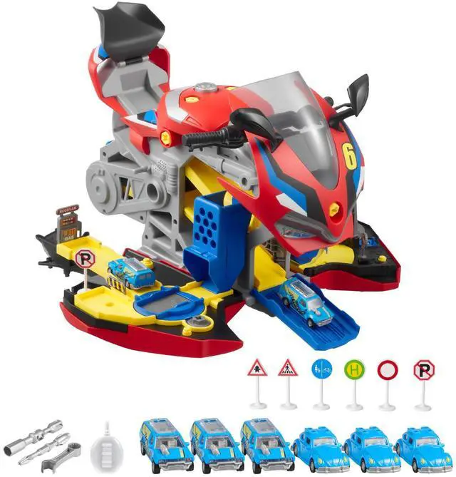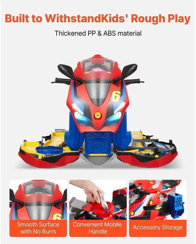 VEVOR Motorcycle Engine Toy, 25 Pieces, Motorcycle Mechanic Toy with Removable Parts, Lights & Sounds, Simulated Riding & Track Racing, Kids Mechanic Workshop Set for Toddler 3 Years and Up, Red