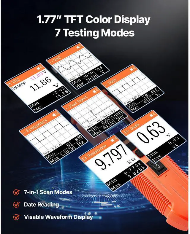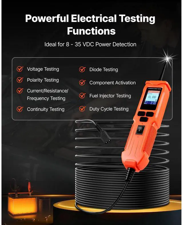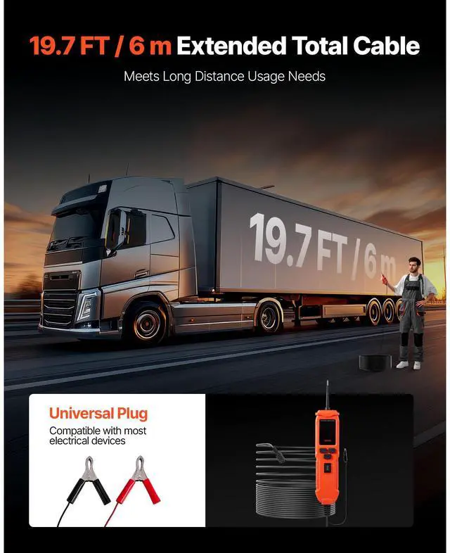VEVOR Automotive Circuit Tester, 8 - 35 DCV Power Circuit Probe Tester with TFT Color Display and Lighting, Automotive Power Tester Probe with 19.7 ft / 6 m Cable, 2-in-1 Electrical Detector Finder