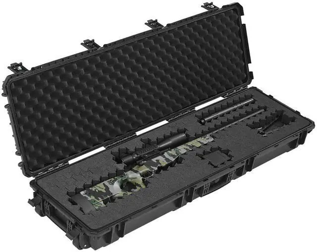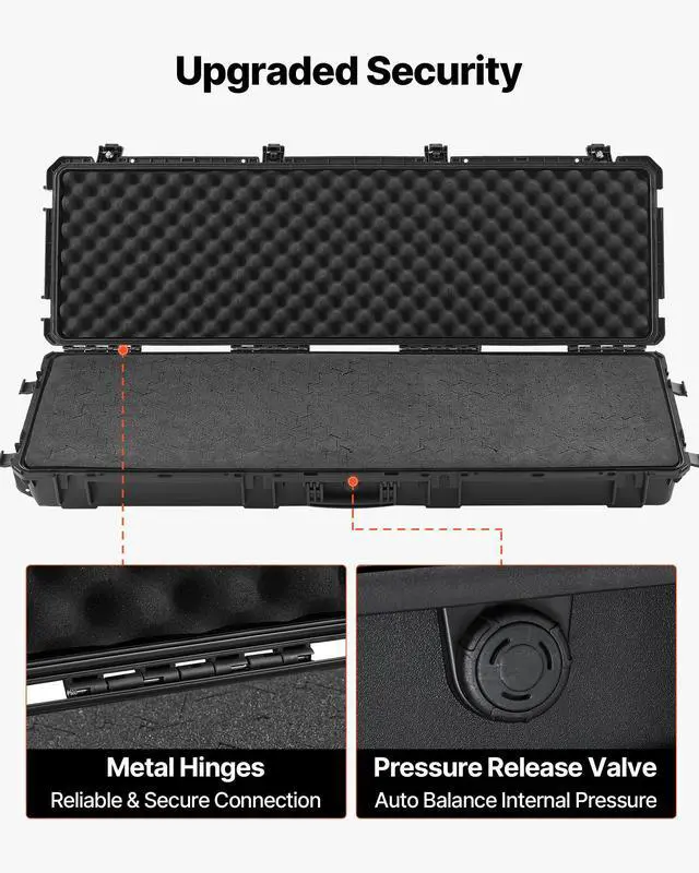 VEVOR Hard Rifle Case, Lockable Rifle Case with Detachable XPE Foam, 50 in Gun Storage with Wheels, IP67 Waterproof & Dustproof Pistol Storage Cases for Rifles, Shotguns, Airsoft Guns, Black