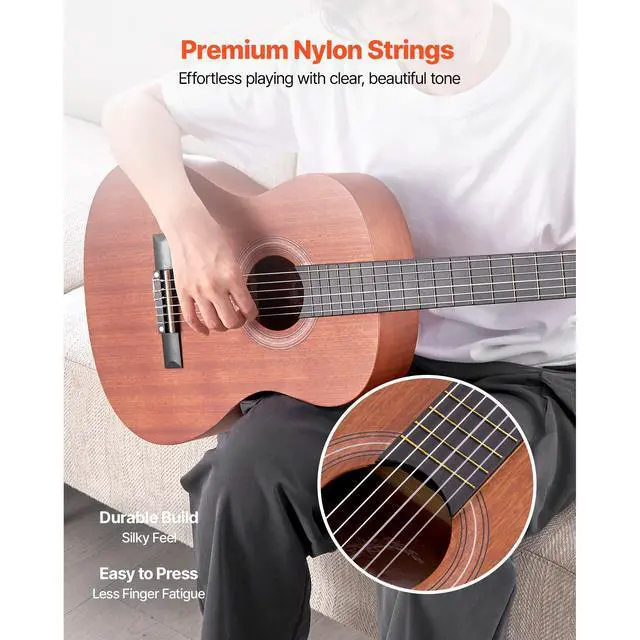 VEVOR Classical Guitar, 36 Inch, Wood Classical Guitar Starter Kit for Beginners, with Nylon Strings, Gig Bag, Strap, Tuner, Extra Strings, Picks, Capo, Sapele & Rosewood, for Kids Girls Boys, Natural