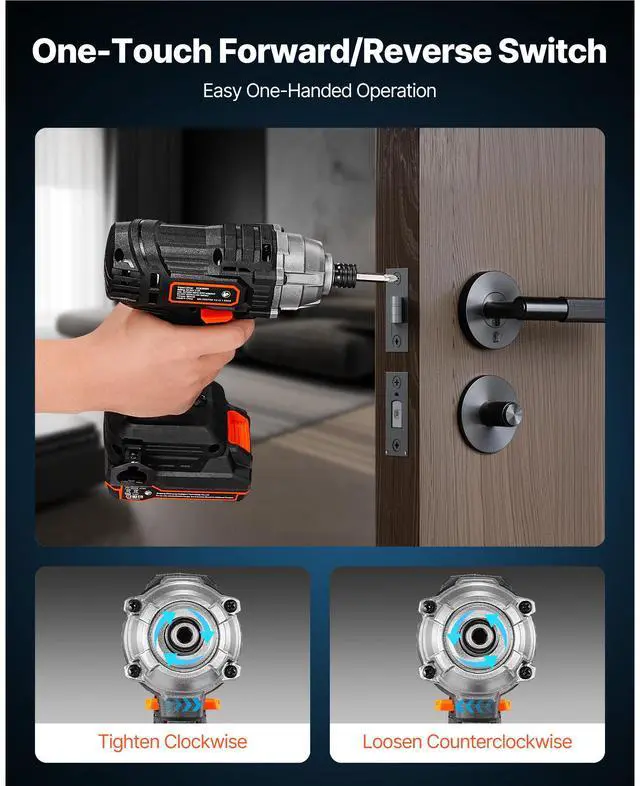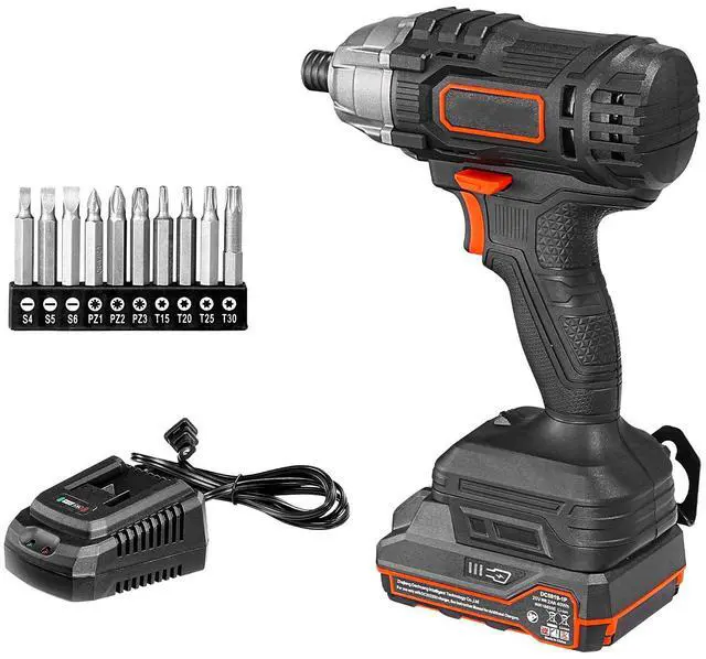 VEVOR Impact Driver, 1/4 Inch, 2800 RPM Max Speed, 20 V Powerful Motor, Electric Cordless Impact Driver Kit with Battery and Charger, 10 Bits, LED Work Light, for Furniture, Electrical, Home Repairs