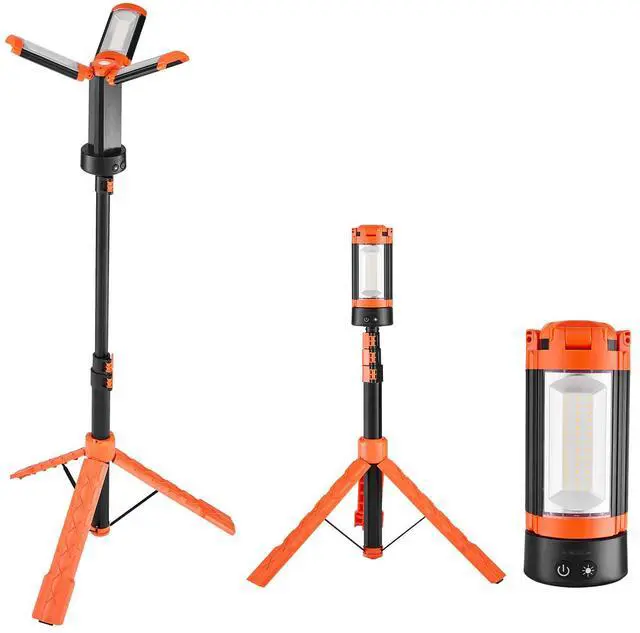 VEVOR LED Work Light with Stand, 10Ah, Rechargeable Cordless Camping Light, with 3 Lamp Heads, Detachable Tripod Stand, 2200 Lumens 3000K-6500K Dimmable, Portable Construction Lighting for Job Site
