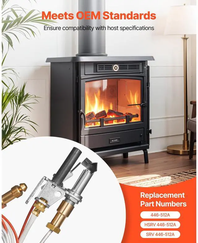 VEVOR Gas Pilot Assembly, OE 446-512A, HSRV 446-512A, SRV 446-512A Fireplace Gas Pilot Assembly Kit, Natural Gas Ignition Replacement, Compatible with Heat & Glo, Heatilator, Lennox, Regency Models