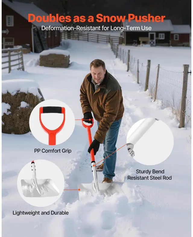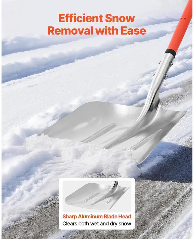 VEVOR Snow Shovel for Driveway, 14 in Wide Aluminum Alloy Snow Shovel with D-shaped Handles, Large Capacity Snowplow Shovels, Lightweight Snows Removal Tool for Garden Car Camping