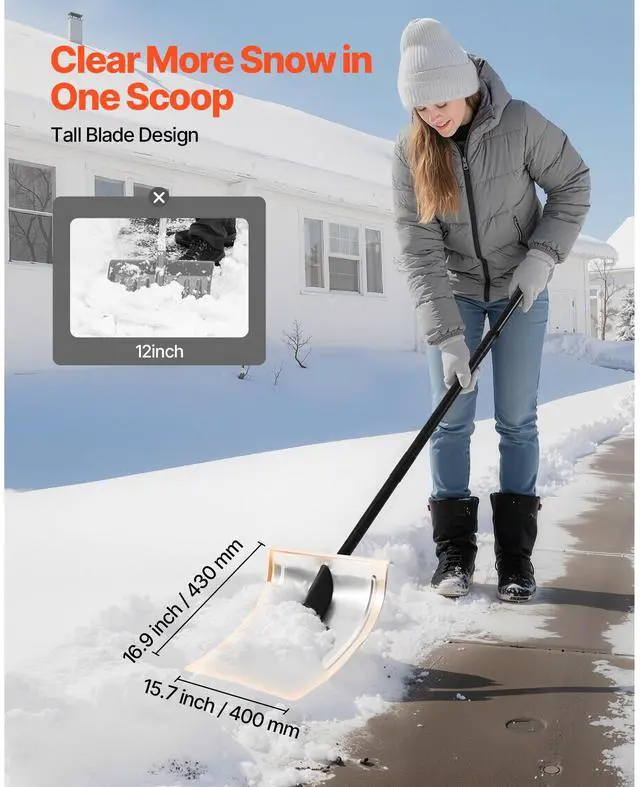 VEVOR Snow Shovel for Driveway, 16 in Wide Aluminum Alloy Snow Shovel, Non Slip Grip, Large Capacity Snowplow Shovels, Detachable & Lightweight Snows Removal Tool for Garden Car Camping Outdoors