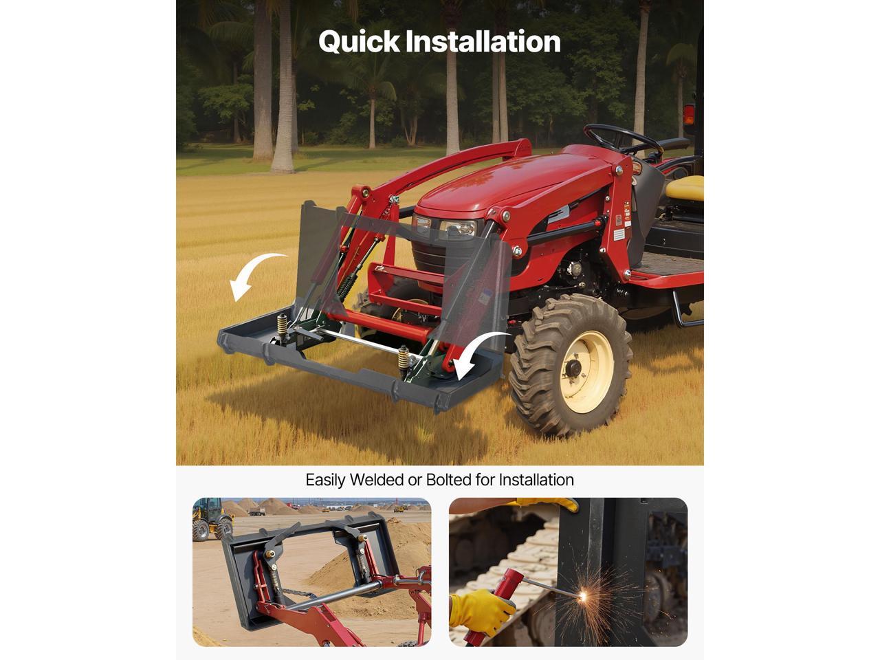- Easy Installation: The quick attach mount plate can be directly mounted on tractors, skid steers, or other equipment using bolts. It can also be welded to attachments like hay forks, plows, or pallet forks for quick and simple setups