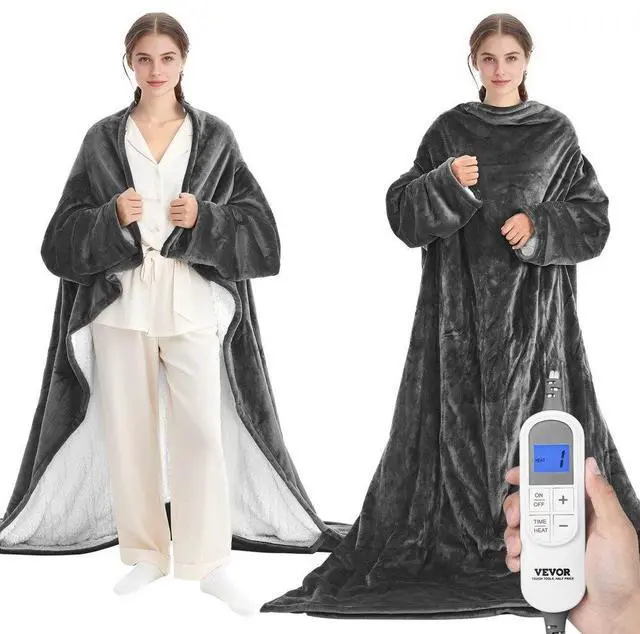 VEVOR Wearable Electric Heated Throw Blanket with Foot Pocket & Sleeves, Portable Robe Snuggie Blankets for Women, 10 Heating Levels, 12H Auto Shut-Off, Machine Washable, 50 x 70 inch, Grey