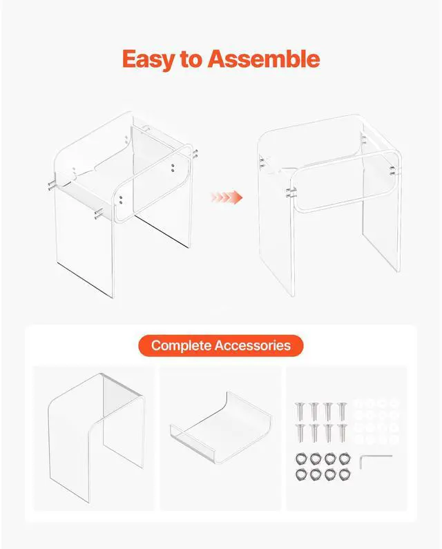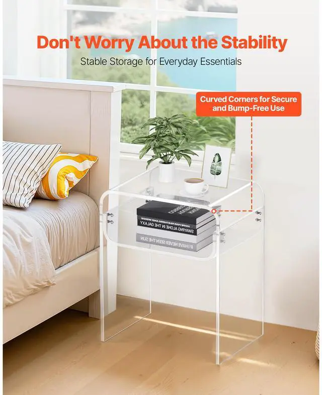 VEVOR Acrylic Side Table, 2 Tiers Clear Bedside Table with Storage Shelf, Modern Rectangle Acrylic End Desk, Transparent Thick Nightstand for Bedroom, Living Room, Study, 11.8 x 15.7 x 19.7 in (Clear)
