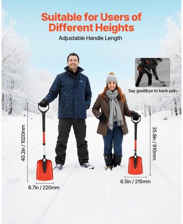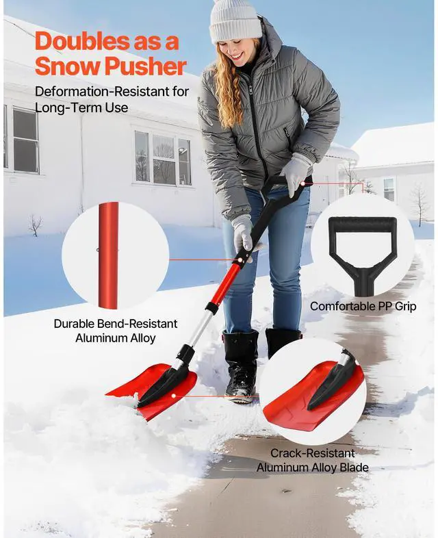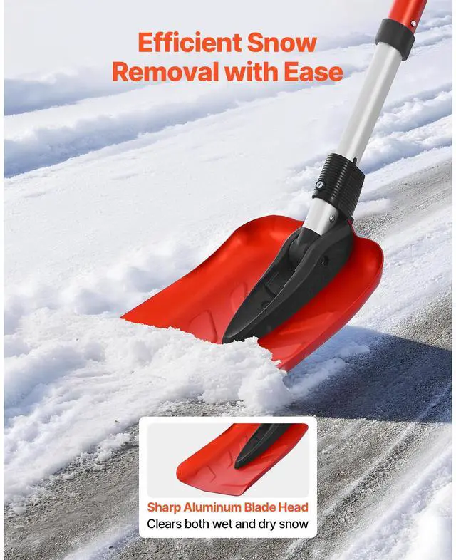 VEVOR Snow Shovel for Driveway, 9 in Foldable Snow Shovel with D-shaped Handle, , 36-40 in Adjustable, Lightweight Aluminum Alloy Snows Removal Tool, Reduce Back Strains for Garden Car Camping