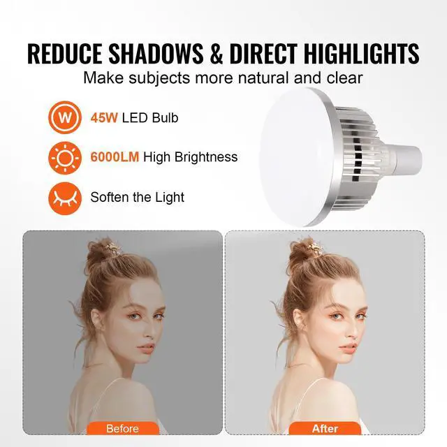 Bulb Power: 45W,Structure combination: Reflective Layer + Oxford Cloth,Overall size: 20 x 28 x 8 in / 500 x 700 x 200 mm,Voltage and Frequency: AC110-240V 60Hz(US),Color Temperature: Adjustable 3000-6500K,Bulb Socket: E27,Item Model Number: YX-RGX04(US),Quantity: 2PCS,Softbox size: 20 x 28 in / 500 x 700 mm,Maximum Lumen: 6000LM,Net Weight: 7.28 lbs / 3.3 kg